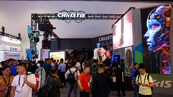 Attendees at the Christie booth at InfoComm China 2025