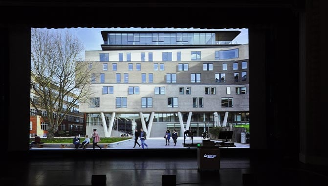 Meanwhile, in the UK, Christie has collaborated with Reflex and Audio Visual Material (AVM) to increase the brightness of one of the largest rear projection systems in Europe, installed at Queen Mary University of London. Two Christie Crimson HD laser projectors have been installed for the 12m by 6m (39 ft x 19.5 ft) rear projection screen in The Great Hall, an 800-seat space, boosting display brightness by around 33%.
