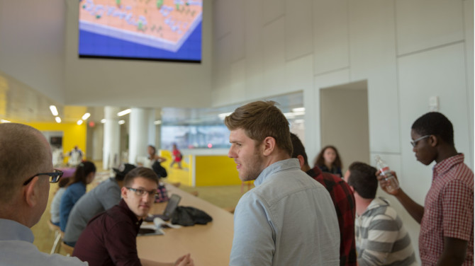 Sponsored by Christie®, the inaugural Code+Art Student Visualization Contest held at the North Carolina State University challenged students to create generative art. The winners then had their pieces displayed on the Art Wall, a 20 ft. wide display wall made up of Christie® MicroTiles®.