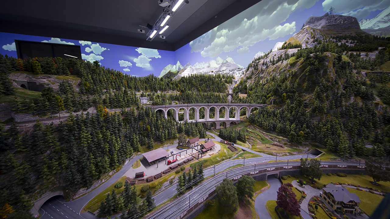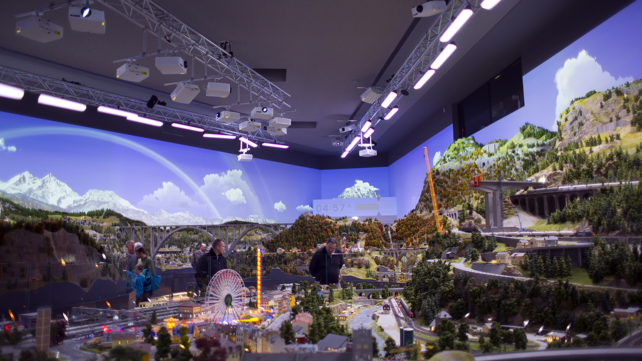 Al centro di TraumWerk c'è un modello con un paesaggio da 400m², dove più di 100 treni viaggiano attraverso un ambiente alpino. I treni viaggiano attraverso uno scenario tradizionale tra modelli in miniatura di persone, edifici e monumenti portati in vita da immagini proiettate. Immagini che si estendono oltre il piano di base e contribuiscono a creare un mondo molto più grande del paesaggio in miniatura stesso; il treno passa da panorami proiettati di campi ondulati a cime maestose e splendide cascate. Il paesaggio è stato creato con l'attenzione ai particolari che ci si potrebbe aspettare da un appassionato. Esso utilizza la tecnologia di proiezione non solo per proiettare il paesaggio, ma tutti i minimi cambiamenti del modello attraverso cui passa il treno. Così come il paesaggio cambia dal giorno alla notte, lo stesso accade per l'ambiente del modello, le case, gli edifici, chiese e stadi. Un ciclo di circa 20 minuti che simula scene di giorno e notte, insieme a una moltitudine di condizioni meteorologiche e si conclude con un impressionante spettacolo di mapping da 2 minuti.