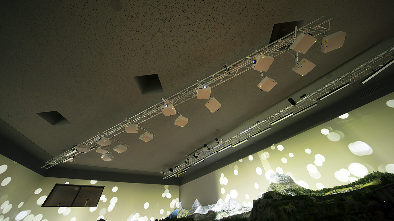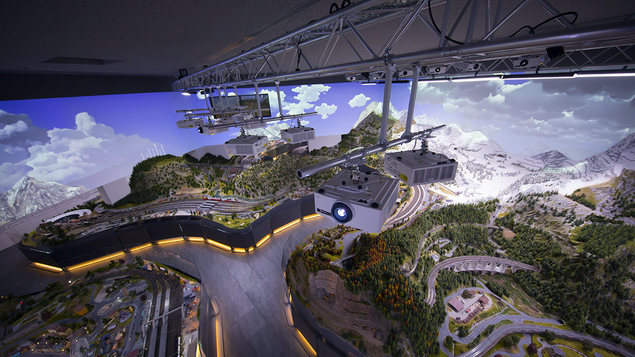 Inoltre, l'esposizione complessiva integra vari elementi interattivi utilizzando la tecnologia. Pfadfinderei ha prodotto contenuti per mettere i visitatori all'interno di una carrozza del treno o al posto di guida di una locomotiva. Tre display LCD da 65 pollici Christie FHD651-T, con superfici tattili intuitive, consentono ai visitatori di ottenere informazioni dettagliate su ciascuno dei singoli treni che si muovono attorno al modello di paesaggio.