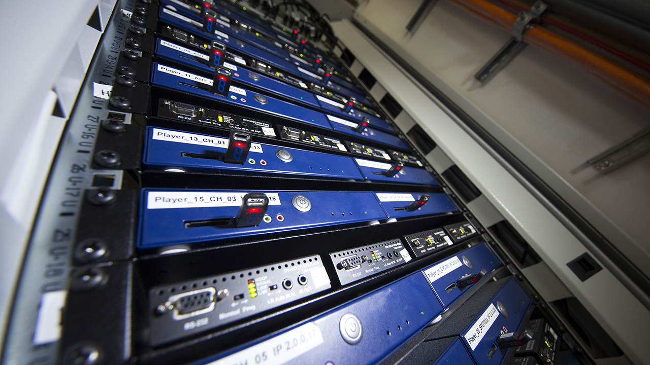 Sono stati dispiegati trentanove Box Player Pandora per il playout dei contenuti. I proiettori e dispositivi di riproduzione vengono controllati mediante il coolux Widget Designer PRO tramite un'interfaccia a tre vie, e forniscono continuamente un'indicazione di stato.