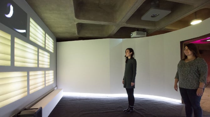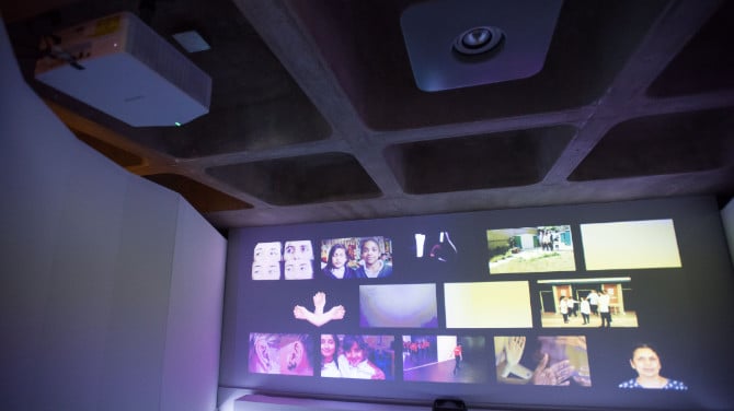 De los audiovisuales se encargó el director técnico Tim Bifield. Una de sus primeras preocupaciones era que la instalación estaba ubicada dentro de un cerramiento, con una distancia de visualización de apenas un metro. La solución fueron dos proyectores Christie GS, que con 7.500 lúmenes tenían el brillo necesario, incluso en condiciones de elevada iluminación ambiental. Además, como tantos de los proyectores Christie repartidos por el Barbican, son de fósforo láser, por lo que funcionan durante largos periodos sin necesidad de gastar en lámparas. "La Serie GS tiene una calidad de imagen fantástica, incluso a distancias tan cortas. Sus proyectores son, además, muy silenciosos, algo idóneo en espacios como este, especialmente al ir montados sobre un techo muy bajo", señala Bifield.