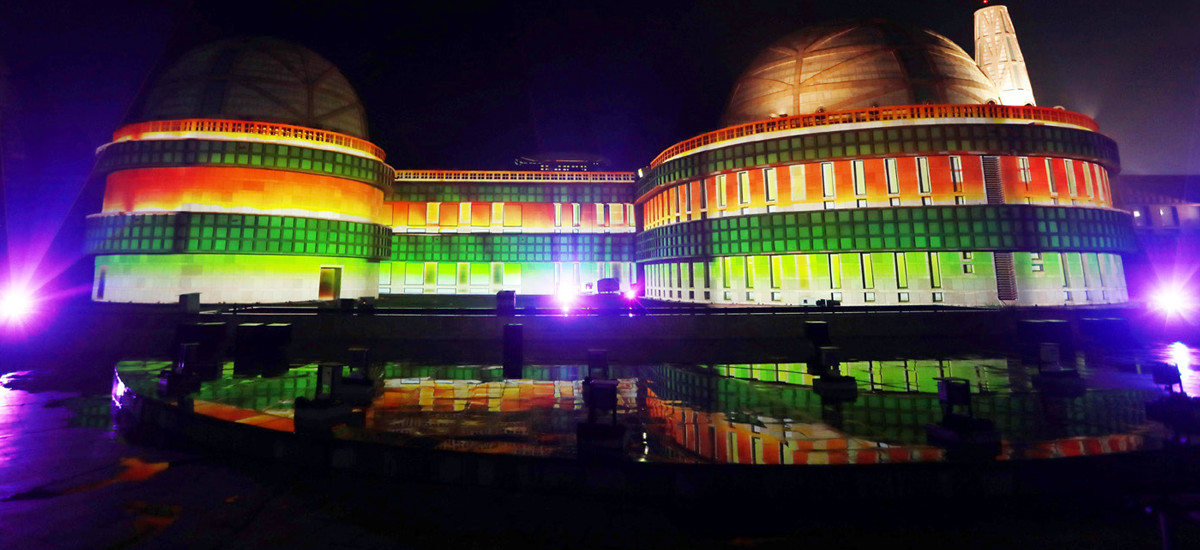 Using Christie® projectors, the Jang-e-Azadi facade is transformed into the canvas of a mesmerizing light and sound show. A total of 12 Christie 3DLP and 1DLP projectors comprising the Boxer 2K30, Roadster S+22K-J, and DXG1052-Q are used for this showcase, which is currently the largest permanent projection mapping installation in India.
