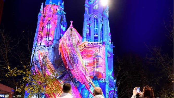 Projection Mapping - Neo-Gothic Cathedral Bathes in the GLOW
