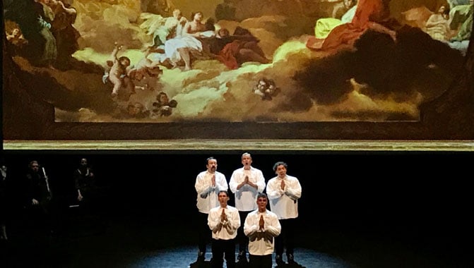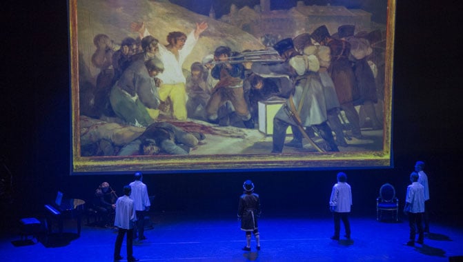 En total, fueron 13 los artistas aragoneses en escena entre bailarines, instrumentistas, actores y los componentes de B Vocal, que conjuntaron sus talentos en una propuesta que recorrió musical y teatralmente la vida del pintor, su dimensión emocional, sus orígenes, evolución y trayectoria vital.
