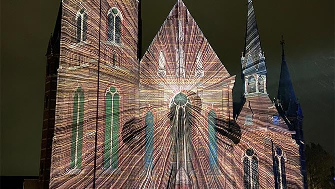 With the Griffyn marking its European debut, all eyes were on the technology to see how the RGB pure laser technology performed. “People see a much more vibrant image over a standard lamp or laser phosphor projector,” says Robin van der Heiden, sales manager, Sahara Benelux. “Often when comparing projectors, we do so on a white background, and you immediately see the difference between rec 709 and rec 2020 color spaces like you get with Griffyn. I wasn’t sure whether the difference would be so visible when mapping onto a red stone building, but I need not have worried, and we were all very impressed. In fact, the artist told me that he could see colors on the church that he hadn’t even seen on his computer when creating the content, which is a huge compliment.”