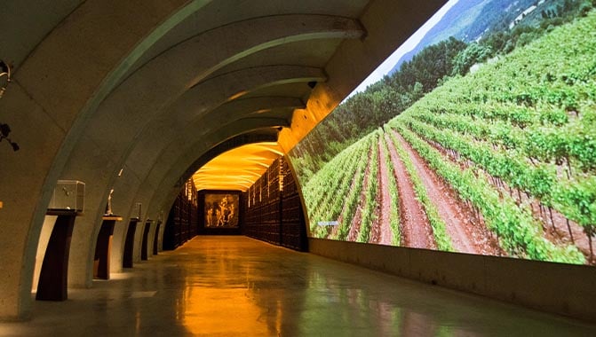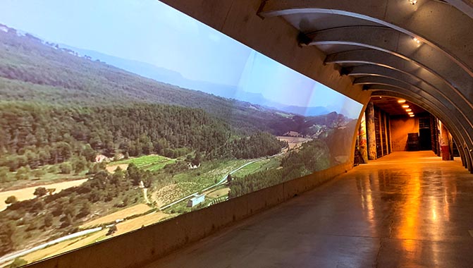 In the tunnel that connects all the caves, a curved screen measuring over 30 meters (98 feet) long displays an impressive audiovisual show on the process of cava making and the local grape varieties used. The mix of music with images and sensations takes visitors on a journey through the seasonal cycle of this sparkling wine.