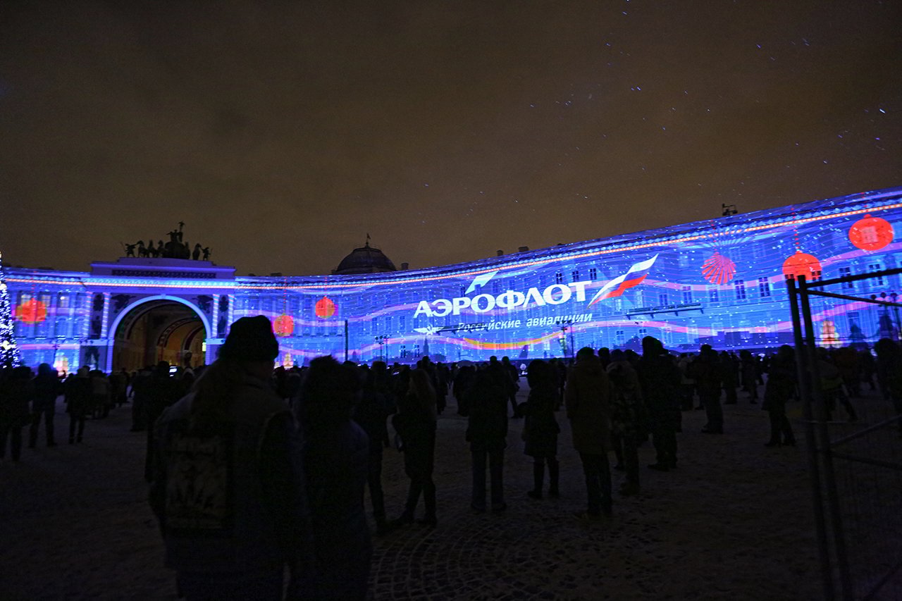 В канун нового 2015 года компания Аэрофлот, крупнейшая авиакомпания и национальный авиаперевозчик России, подарила Санкт-Петербургу праздник – уникальное видеопроекционное шоу «Новогоднее путешествие». В самом сердце города, на Дворцовой площади, с 28 декабря 2014 по 7 января 2015 команда ETC Russia обеспечивала техническую сторону мероприятия.