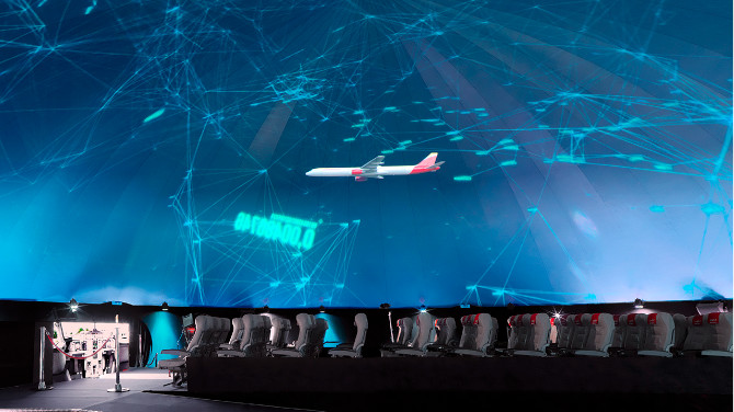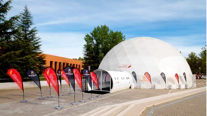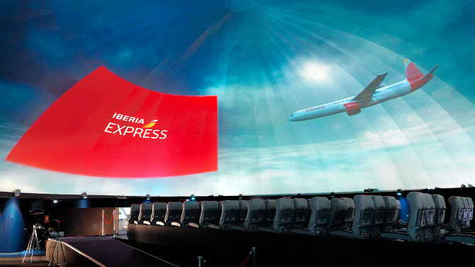 Newmedia setzte eine geodätische Kuppel und ein internes Projektionssystem mit "Unterdruck" ein. Die Kuppel hatte einen Durchmesser von 21,7 m und war 11 m hoch; ihre Oberfläche betrug 364 m2. Im Inneren der Struktur wurde ein Teil des Rumpfes eines Airbus A320, dem charakteristischen Flugzeug der Airline, nachgebaut. Danach lieh man sich 90 echte Flugzeugsitze von Iberia Express aus und befestigte sie auf einer Plattform mit einem Subwoofer-Vibrationssystem, um das "Flugzeug-Feeling" so real wie möglich zu machen.