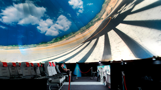 Ganz bestimmt! Doch statt die Feier über den Lüften zu veranstalten und dafür den wohlverdienten guten Ruf (samt Auszeichnung) für ihre Pünktlichkeit aufs Spiel zu setzen, hieß Iberia Express seine Passagiere zu einem virtuellen Flug von Madrid zur Urlaubsinsel Teneriffa willkommen. Unterstützt wurde die Airline hierbei durch eine Kuppelprojektion in 360°-Anordnung, mit freundlicher Genehmigung vom Live-Event-Experten Newmedia Creative Technology Studio und Pro-AV-Hersteller Christie.