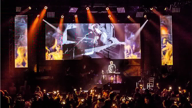 Der auf den Projektionsflächen gezeigte Content bestand zum einen aus Live-Bildern der Band, zum anderen aus weihnachtlichen Animationen, die das festliche Hallenambiente zusätzlich verstärkt.