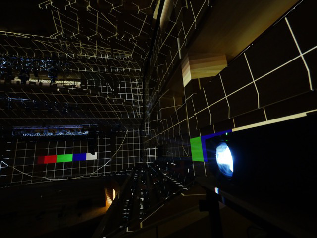 El proyector central estaba situado en la zona media del auditorio, concretamente en la cabina habilitada para ello, con una lente óptica 2.0 y a una distancia de proyección de 41 metros. Los otros dos proyectores laterales se situaron en las lonjas del primer anfiteatro, donde las imágenes tenían el objetivo de crear la sensación inmersiva. Las lentes utilizadas en este caso fueron 1.2 y la distancia de proyección de 38 metros.