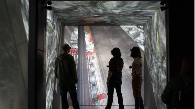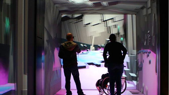 Scopo del sistema è quello di fornire agli utenti la possibilità di immergersi completamente nello spazio tridimensionale. Per questo motivo, l'installazione è anche dotata di un sistema di tracciamento AR, costituito da un controller master e due nodi controller, dotato di quattro telecamere e può essere espanso a quattro ulteriori telecamere mobili. In questo modo viene rilevata la posizione dell'utente e la sua prospettiva di visualizzazione viene convertita in tempo reale nella rappresentazione proiettata. Se l'utente si sposta all'interno del CAVE (Cave Automatic Virtual Environment), la rappresentazione si muove di conseguenza.