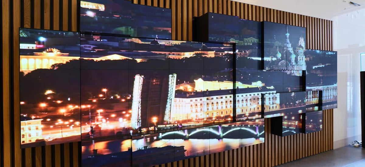 Для отображения контента используются четыре медиаплеера и четыре внешних блока управления MicroTiles ECU. Модули MicroTiles отличаются долгим сроком службы, исключительной яркостью и высоким разрешением. «Из-за нестандартного соотношения сторон (максимальная высота видеостены – 5 модулей, максимальная ширина – 10) и высокой плотности пикселей разрешение составляет 4 650 х 1 740, т.е. больше, чем 4К. Поэтому изображение остается четким, даже если подойти к видеостене вплотную», – добавляет Николай.