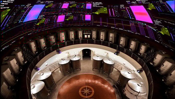 Palmaz had the idea of projecting the data and information on the domed ceiling in the fermenting room.
