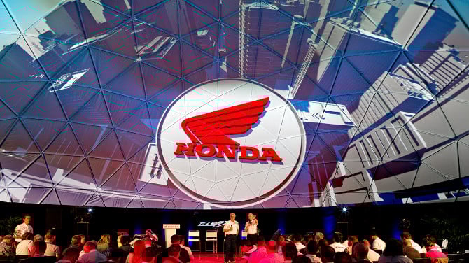 Honda связалась с Newmedia Technology Studio, где для этого случая спроектировали великолепный геодезический купол с внутренней проекционной системой, под которым Honda могла представить мотоцикл международным СМИ. Этот купол диаметром 16 метров и высотой 8 метров был оборудован шестью проекторами Christie Roadster HD20K-J (технология 3DLP, разрешение HD, 18 000 ANSI люмен) для панорамного (360º) показа видеоматериалов, созданных специально для этого мероприятия, чтобы зрители смогли испытать неповторимое чувство езды на высококлассном мотоцикле.