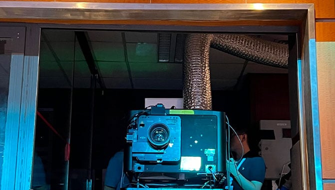 A cinema projector is placed in a projection room, ready to screen the opening film of the SIFF.
