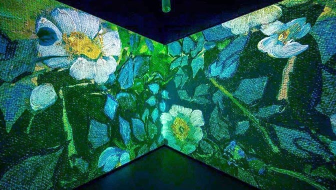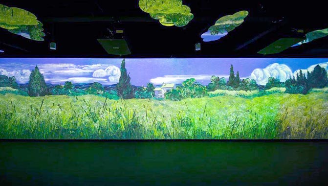 Themed “The Four Seasons by Masters of Art”, visitors can enjoy stunning digital projections of eight art masterpieces on the walls and floor of the pavilion covering an area of 130 square meters. They include Vincent van Gogh’s “Almond Blossoms”, “Green Wheat Field with Cypress”, “Starry Night”, “Sunflowers”, “The Harvest”, and “Wild Roses”, as well as Oscar-Claude Monet’s “Water Lilies” and “Floes at Bennecourt”, which magnificently highlight nature’s beauty and the ever-changing world around us.