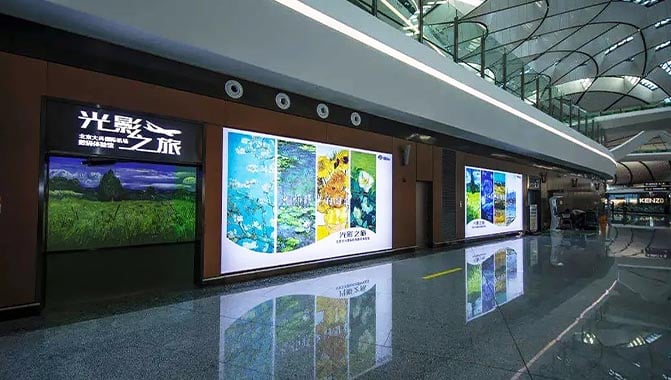 Located on the second level of the sprawling terminal building nicknamed “the Starfish” due to its unique star-shaped design, the “Journey of Light and Shadow” digital experience pavilion provides visitors with an immersive and interactive space to appreciate and experience art through the use of cutting-edge projection, audio, and interactive technologies. The venue consists of a preface hall and main gallery lit by 15 Christie DWU850-GS 1DLP® laser projectors supplied, installed and commissioned by Christie’s longstanding partner, Wincomn Technology.