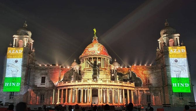 Bright and vivid projections on the exterior of Victoria Memorial during the 20-minute show