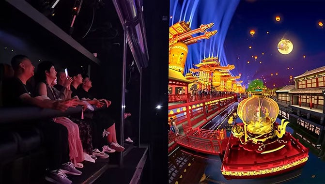 TANGSHAN, China – Christie® 4K10-HS 1DLP laser projectors deliver exceptional clarity and vivid colors at the new flying theatre attraction at Hetou Old Street scenic area in Tangshan, Hebei province. This captivating experience takes visitors on an aerial journey through northern China’s most iconic sites, including the ancient Great Wall, the breathtaking Shanhaiguan Pass, and the historic Chengde Mountain Resort.