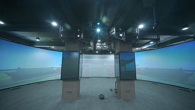 To ensure impeccable image quality and stability, Dr. Jiang’s department collaborated closely with Liancheng Digital throughout the design, installation, and commissioning stages. Highlighting the advantages of the Christie DWU7062-GS projectors, Dr. Jiang said, “Their compact footprint allowed for strategic placement to accommodate two columns within the laboratory while ensuring optimal heat dissipation. Additionally, during the commissioning stage, meticulous calibration was performed on the projectors’ internal optical path, brightness, and color consistency. These efforts were crucial in ensuring that the VR system consistently delivers impeccable image clarity and uniformity on the screen.”
