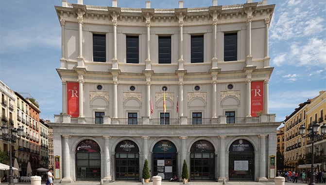 El Teatro Real se inauguró en 1850 y en la actualidad se sitúa como uno de los grandes focos internacionales de actividad de ópera. El edificio es una mezcla arquitectónica que cuenta con 28 palcos en diferentes plantas, además de ocho proscenios y del Palco Real de doble altura. La joya del teatro es su caja escénica que, con sus 1.472 metros cuadrados, permite complejos cambios de decorado y múltiples combinaciones en el escenario y el foso de la orquesta.