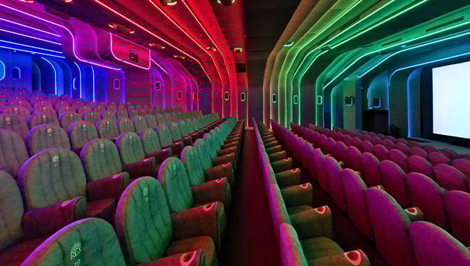 “Our customers have been very happy,” adds Alexandre. “You don’t necessarily need to have a 25-metre (82 f) screen to please people. You need to have a great room that people enjoy being in, comfortable seating, and excellent projection and sound, and people are happy.”
