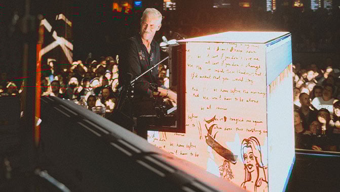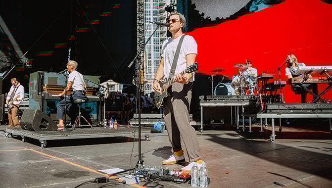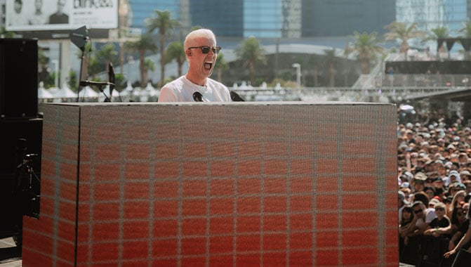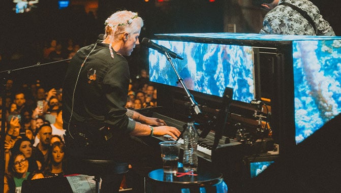 As a result, Clutch and McMahon wanted to encompass as much of the piano as possible. “I grabbed the tape measure and started doing some math to figure out how I could pull it off.” The solution? Christie MicroTiles LED. “I don't think we could have done it with another product because the form factor of MicroTiles LED is a lot smaller than other solutions on the market.” At 1,000 nits, MicroTiles LED was also bright enough to stand out on stage during Something Corporate’s daytime performance at the When We Were Young festival.