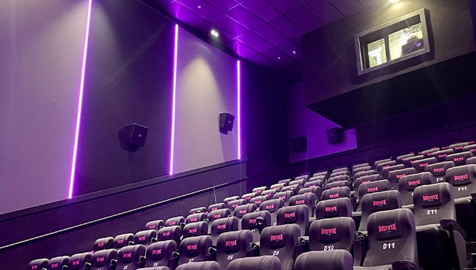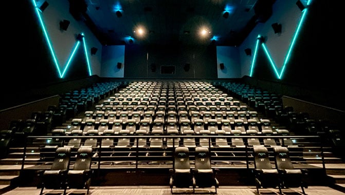The new complex has a capacity of 1,313 seats across seven theatres with screens that range in size from 10 meters (33 feet) to 16 meters (52 feet) wide. Auditoriums are equipped with Christie CineLife + projectors that deliver brightness of 9,000 to 22,000 lumens.