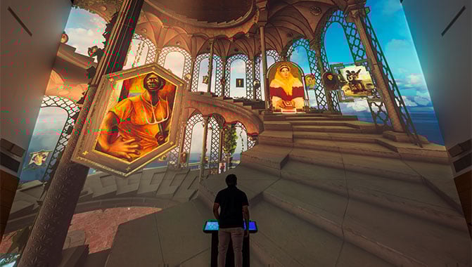 Ideum illuminated the massive canvas with three Christie 25,300 lumen M 4K25 RGB pure laser projectors with UHD 4K resolution and five 11,850 lumen DWU1100-GS laser projectors with WUXGA resolution. "Guests can create 3D interactive content on Ideum’s kiosks, including Renaissance-inspired self-portraits and modern flying machines, or explore the kinetics of the human body. All areas of study throughout da Vinci's life. Once created, these are launched onto the 3,000 square-foot projection screen and take on a life of their own!" explains Hardebeck. With nine kiosks, the Hall can accommodate 216 users per hour.