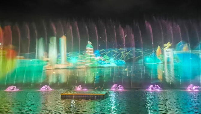 With water columns reaching heights of up to 15 meters, the show is a living embodiment of the overarching theme, “Return to Phoenix City,” transforming the Diannong River into a canvas for a mesmerizing phoenix-themed performance that captivates audiences with a harmonious blend of water jets, high tech projection, show lighting, and music.