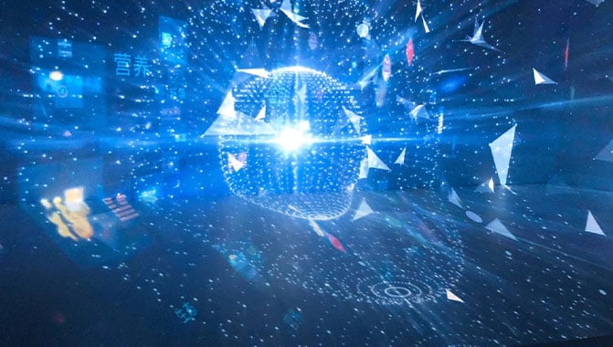 M. Zhang a précisé qu’à la différence des espaces CAVE classiques, cette installation particulière a été réalisée dans une salle de forme trapézoïdale qui a nécessité un alignement et un étalonnage avancés des projecteurs. Les 10 projecteurs laser Christie LWU900-DS ont été stratégiquement installés au plafond, chacun couvrant une zone mesurant 6 mètres de long et 3,75 mètres de haut.