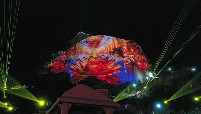 Narendra Naidu, principal consultant, Rhino Engineers, added, “This is the first time in India that an innovative 3D projection mapping show has been accomplished on a large natural landscape. We are delighted to offer our expertise to ensure that the theme and concept are perfectly aligned together during the execution. This is a landmark project in terms of scale, content delivery and the types of AV technologies used, and we have every reason to rejoice and be proud of what we have achieved.”