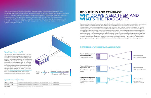 Even though the precision telecentric lens has a unique, high-tech imaging system, like many heroes, the cinema lens doesn’t work alone. The lens and DLP® light engine work closely together to optimize the image to your screen.