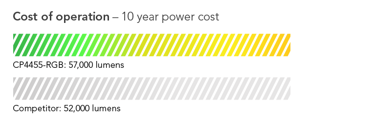 - Operational efficiency – Achieves 12.4 lumens per watt