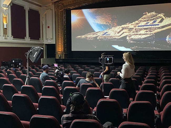 The crew assembled at Hamilton’s Playhouse Cinema for the one-day shoot. It’s a single-screen theatre that embodies all the charm of a theatre that you’d expect to see in the movies. Digital Sabbath serviced the production, with gear support provided by Arri Rental in Toronto. Camera, art, sound, grip and electric, a data management technician, and hair and makeup departments rounded out the team.
