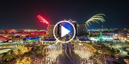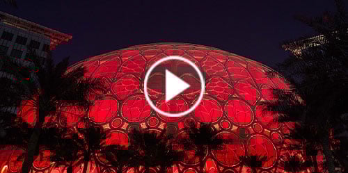 Watch videoAl Wasl Plaza, the beating heart of Expo 2020 lights up with 252 Christie D4K40-RGB pure laser projectors.
