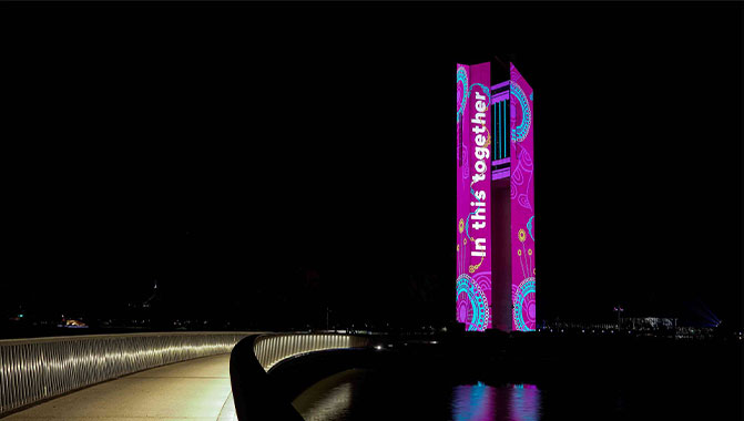 With the exception of the Carillon projections, National Reconciliation Week 2020 was celebrated entirely online in light of the COVID-19 pandemic. The theme for this year was ‘In This Together’, which highlighted the importance of coming together to support each other in a shared experience, whether in a crisis or in reconciliation.