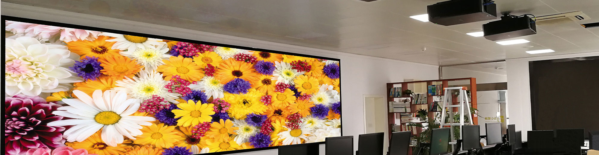 Three Christie D13WU-HS 1DLP® laser projectors are fitted on the ceiling of the control room to display visuals on a screen measuring 7.2 meters (23 feet) long by 1.8 meters (5.9 feet) high. Boasting 13,500 ISO lumens, a long-lasting and reliable laser light source, with the enhanced color accuracy of Christie’s BoldColor™ Technology, the D13WU-HS is a cost-effective option for high-use applications.