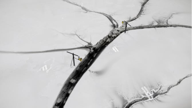 Spanning 10,000 sq. ft. and painted in dull-white swimming pool paint, it’s difficult to visualize what’s being shown. Or, as Simoneaux puts it: “If you’re unfamiliar with our coast, all you see is a giant white canvas with a black diagonal traversing it.”