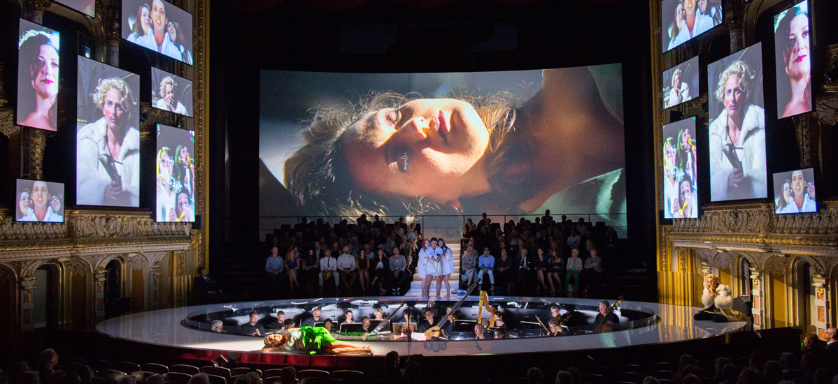 Such an accolade is deserving for Spanish director Calixto Bieito, who is known for his radical and expressive interpretations of operas. Dramatic scenes and large, projected images of actors moving on the catwalk around the orchestra pit were captured on video as part of L'incoronazione di Poppea's pre-production then displayed on screens in both portrait and landscape mode.