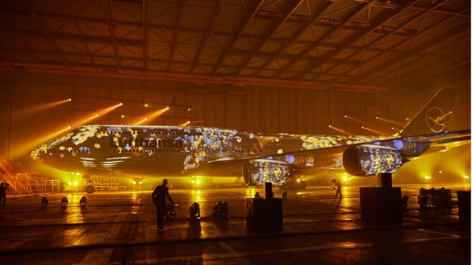 It is exactly 100 years since Otto Firle designed the famous crane symbol for the Deutsche Luft-Reederei DLR, the predecessor airline to Lufthansa. That's reason enough for the company to give a glimpse into Lufthansa's history and bring the logo into the digital age. The result was unveiled at Frankfurt Airport at an event featuring the motto "Explore the new." In the Lufthansa A380 hangar, visitors experienced a spectacular 3D projection mapping onto a Boeing 747-800, the first aircraft of the fleet to bear the new design.