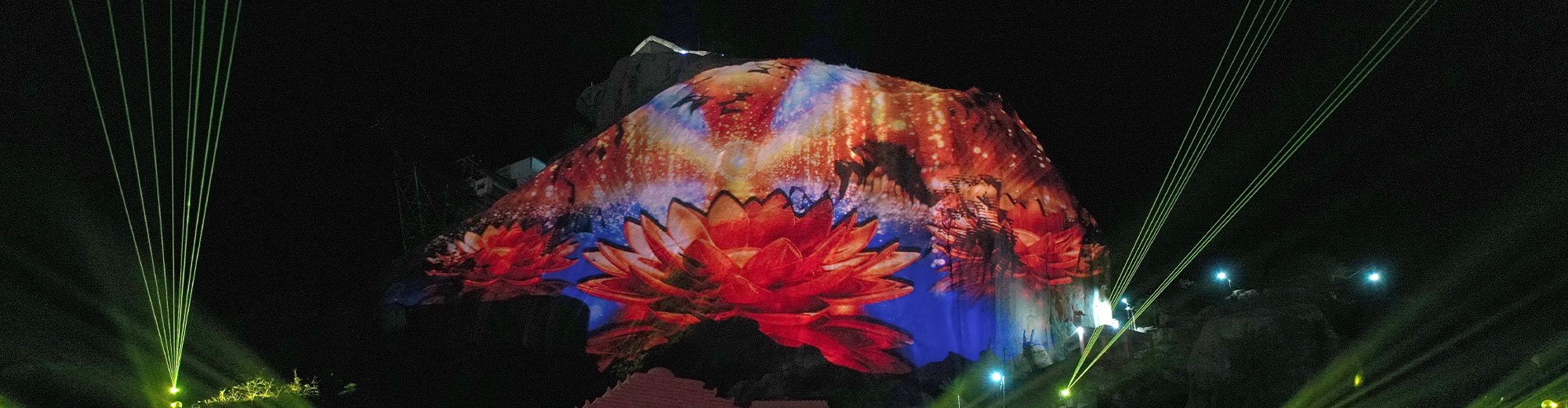 “This is the first time in India that an innovative 3D projection mapping show has been applied to the façade of a large natural landscape,” says Narendra Naidu, principal consultant, Rhino Engineers. “Projecting vivid imagery on this massive mountainous rock is a new and exciting concept that had yet to be attempted here. As AV consultant, we are responsible for checking and verifying the quantity and quality of the project’s implementation, as well as ensuring that the theme and concept are perfectly aligned during the execution process.”