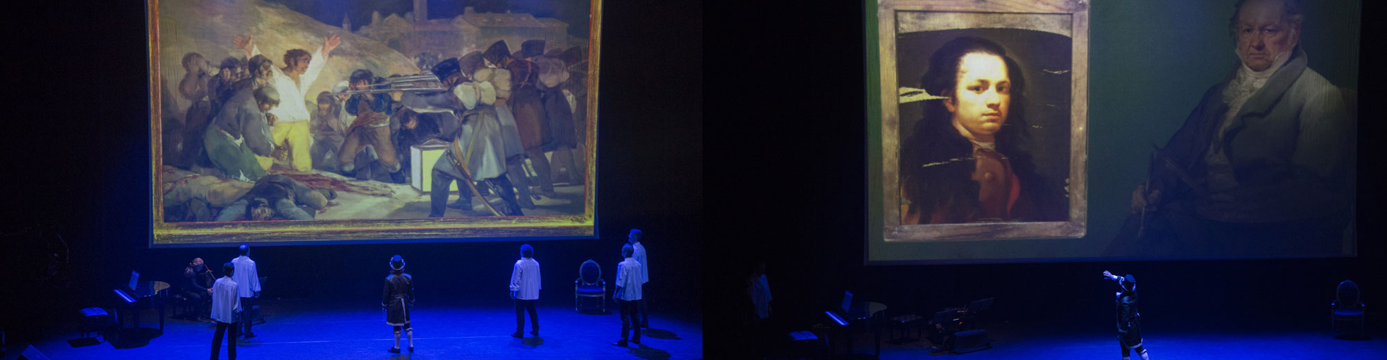 Goya was born on 30 March 1746 in Fuendetodos, a village in the province of Zaragoza in northeast Spain. To commemorate the 275th anniversary of the artist’s birth, B Vocal, a local a cappella singing group, conceived a show called Las Voces de Goya [Goya’s Voices] at the ZaragozaAuditorium. Combining theatre, dance, chamber music and multimedia projection, the show transported the audience back to the time of the artist.