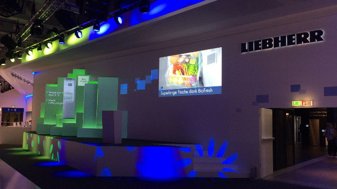 A motto that Liebherr Hausgeräte GmbH took literally when planning its stand at the IFA in Berlin, the leading trade fair for consumer electronics and home appliances. The company had to develop a concept for a stage show on the topic of "The new dimension of freshness".