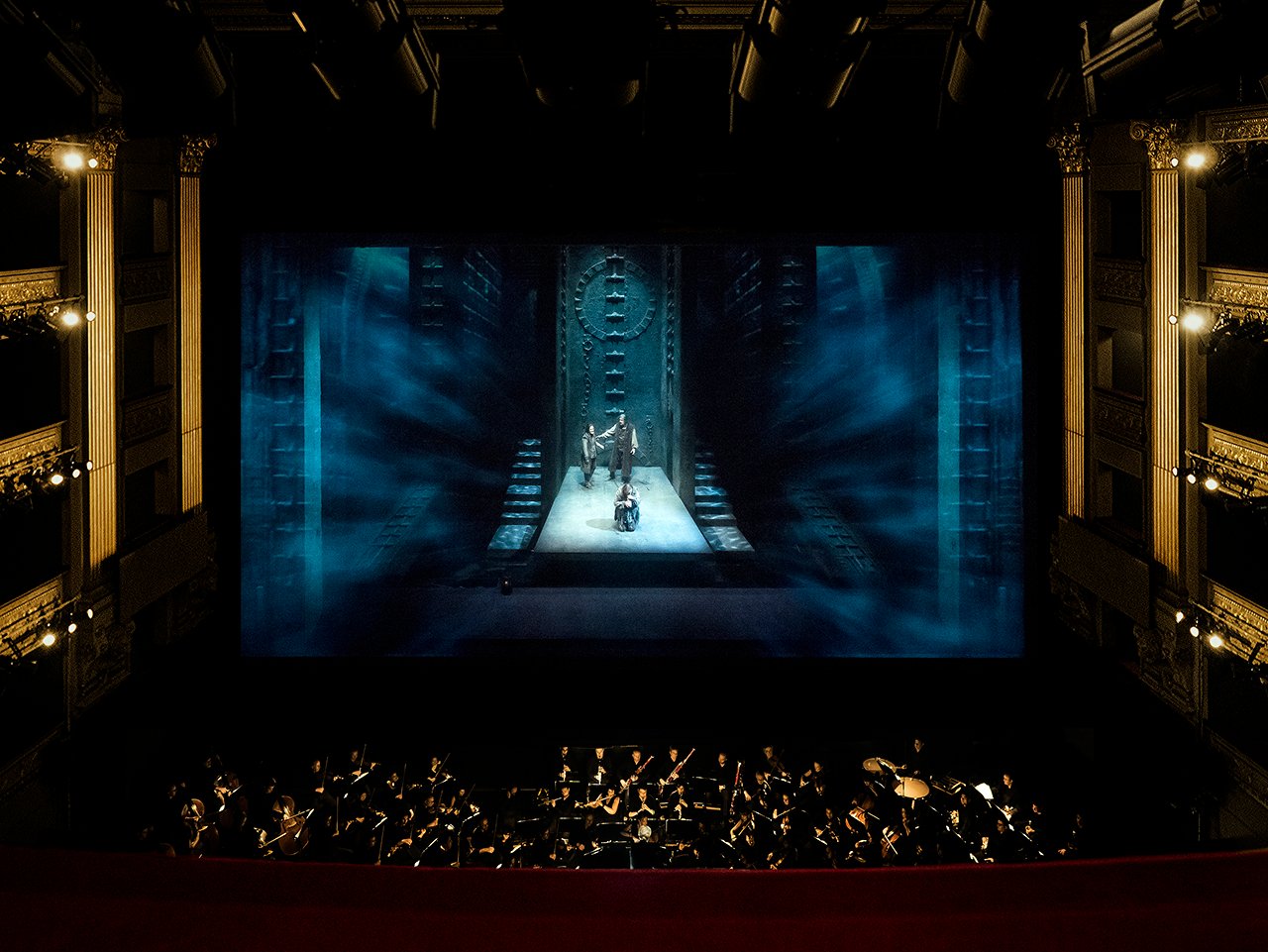 In fact, the high-definition projections are one of the strong points of the production, creating truly impressive 3D effects thanks to a skilful mix of audio-visuals and reality that immerses the audience in the work. The majority of reviews underscored the use of the projections and the 3D effects as the most original element of Fidelio.