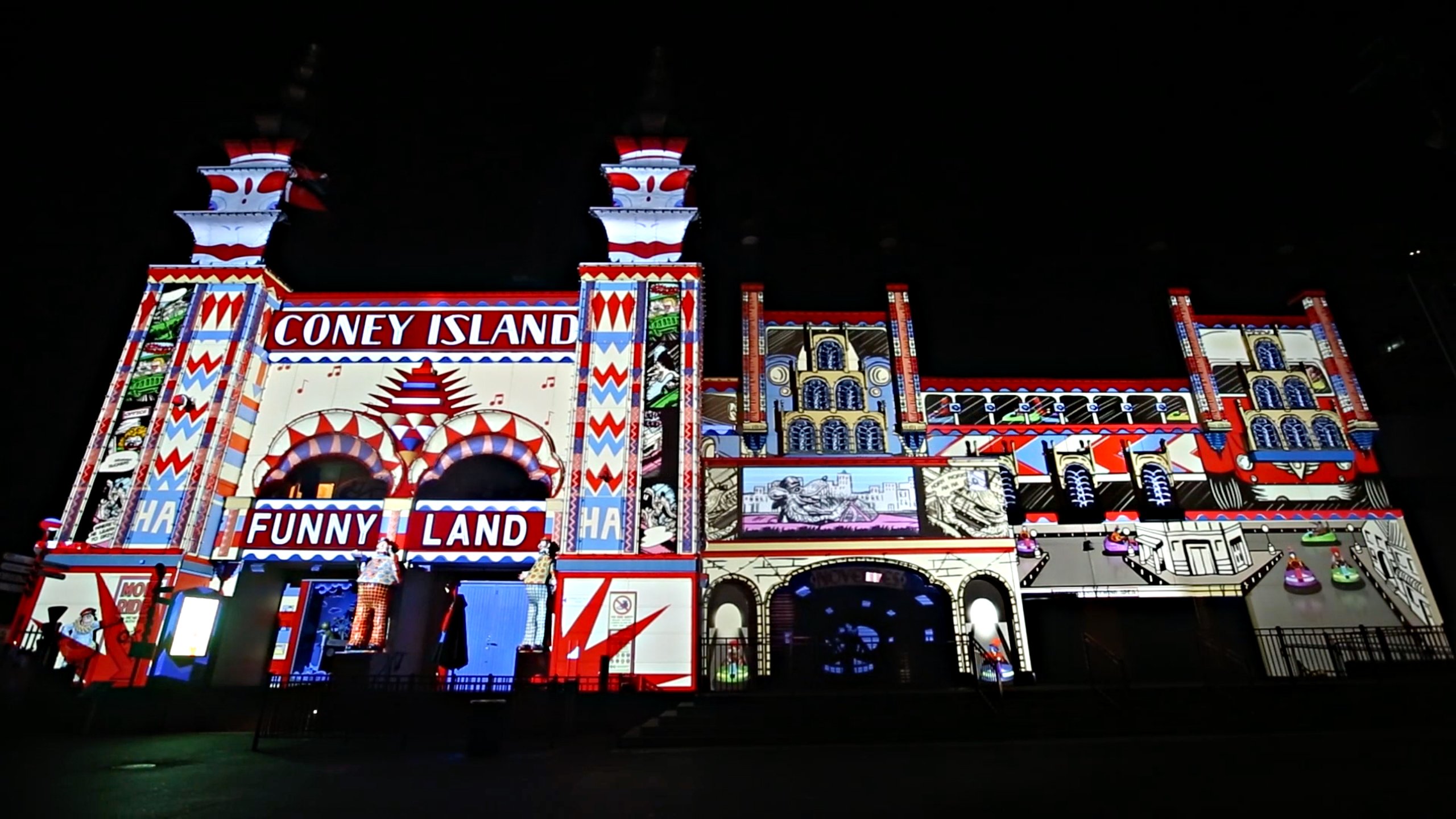 “The artwork featured in and around Luna Park – much of it dating back to the early decades of the Park – was the major inspiration and influence behind the design style of the projections. We translated the Park’s artworks into the building’s architecture using a variety of design approaches and production techniques, helping to recreate the wonder and magic of this much-loved Sydney institution,” says Milne.