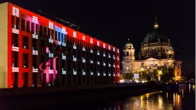 Avec son mapping vidéo spectaculaire sur la façade Est du Forum Humboldt, Choi a invité les visiteurs et les passants à réfléchir sur leur relation à un lieu particulier et son histoire, l'atmosphère étonnante leur permettant de découvrir la construction et la transformation du château d'un point de vue asiatique. En utilisant le mouvement électromagnétique de 129 600 photons, l'artiste a converti l'énergie libérée sur le site en algorithme numérique qui a ensuite été projeté sur la façade du château. Au total, six projecteurs Christie® Boxer 4K30 ont été utilisés pour la projection.